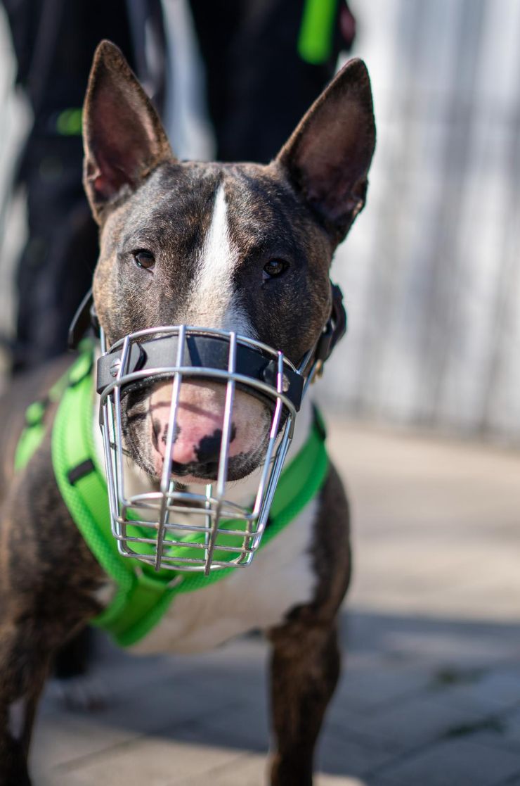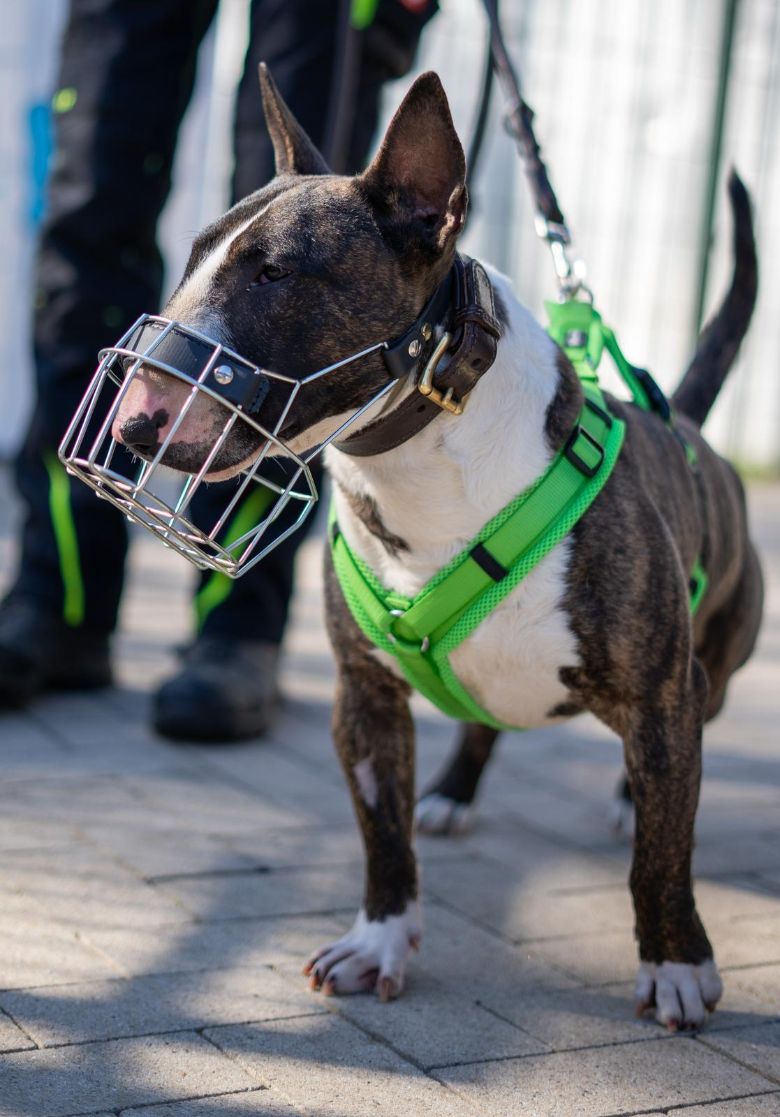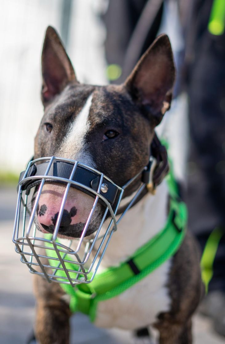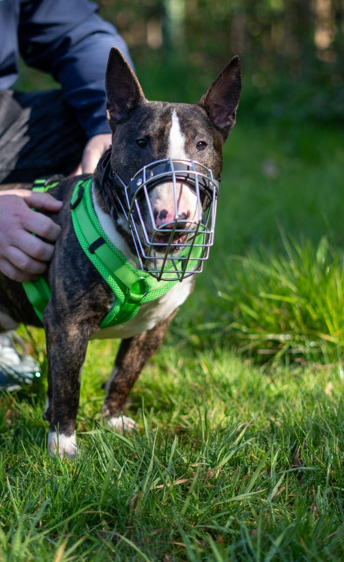 Franz kam im Februar als Fundhund zu uns ins Tierheim. Da er als Fundhund natürlich keine Papiere hat und seine Schulterhöhe über 40 cm liegt, fällt er in einigen Bundesländern – darunter auch NRW – unter die Rasseliste. Er scheint seine Rassebeschreibung gut verinnerlicht zu haben: Franz ist ein echter Charakterkopf mit einem starken Willen und einer guten Portion Humor. Wenn ihm etwas nicht passt, zeigt er das deutlich – sei es durch Bocken an der Leine oder indem er sich einfach stur weigert weiterzugehen. Wir vermuten, dass Franz vor seiner Zeit bei uns nicht viel lernen durfte. Für ihn ist nahezu alles neu und spannend. Dabei zeigt er sich sowohl Menschen als auch anderen Hunden gegenüber recht distanzlos – manchmal sogar ein bisschen zu sehr. Grundsätzlich ist er aber ein freundlicher und aufgeschlossener Kerl, besonders im Umgang mit Menschen. Seit seiner Ankunft hat Franz bereits einiges gelernt. Seine Gesundheit war in der Vergangenheit leider nicht ganz stabil, was uns auch in der Erziehung zeitweise eingeschränkt hat. Er litt an einer beidseitigen Kehlkopflähmung, die ihm das Atmen stark erschwerte. Anfang Juni wurde er operiert – dabei wurde eine Seite seines Kehlkopfes dauerhaft geöffnet und fixiert, um ihm das Atmen zu erleichtern. Die Operation ist gut verlaufen, und wir hoffen, dass er nun wieder deutlich mehr Lebensqualität und Bewegungsfreiheit genießen kann. Franz fühlt sich als Einzelhund vermutlich am wohlsten. Er hat nie richtig gelernt, angemessen mit Artgenossen umzugehen. In Situationen mit viel Dynamik geht er schnell nach vorne – dabei ist nicht auszuschließen, dass er seine Zähne einsetzt würde, sowohl gegenüber anderen Hunden als auch gegenüber Menschen, die ihn in solchen Momenten aus der Situation nehmen möchten. Sein Verhalten ist – betrachtet man den ursprünglichen Verwendungszweck des Bullterriers – durchaus rassetypisch. Daher suchen wir für Franz ein Zuhause ohne andere Tiere, kleine Kinder, Katzen oder Kleintiere. Menschen mit Hundeerfahrung, idealerweise im Umgang mit charakterstarken Rassen, wären ideal für ihn. Franz kennt das Tragen eines Maulkorbs und ist damit gut vertraut. Update 08/25: Wir hoffen sehr, dass Franz bald ein liebevolles Zuhause findet, denn der Tierheimalltag setzt ihm zunehmend zu. Seine Spazierfreude hat spürbar nachgelassen, und auch seine fröhliche Art zeigt sich nur noch selten. Es wird Zeit, dass er ankommen darf.