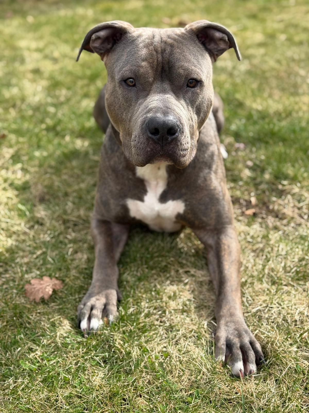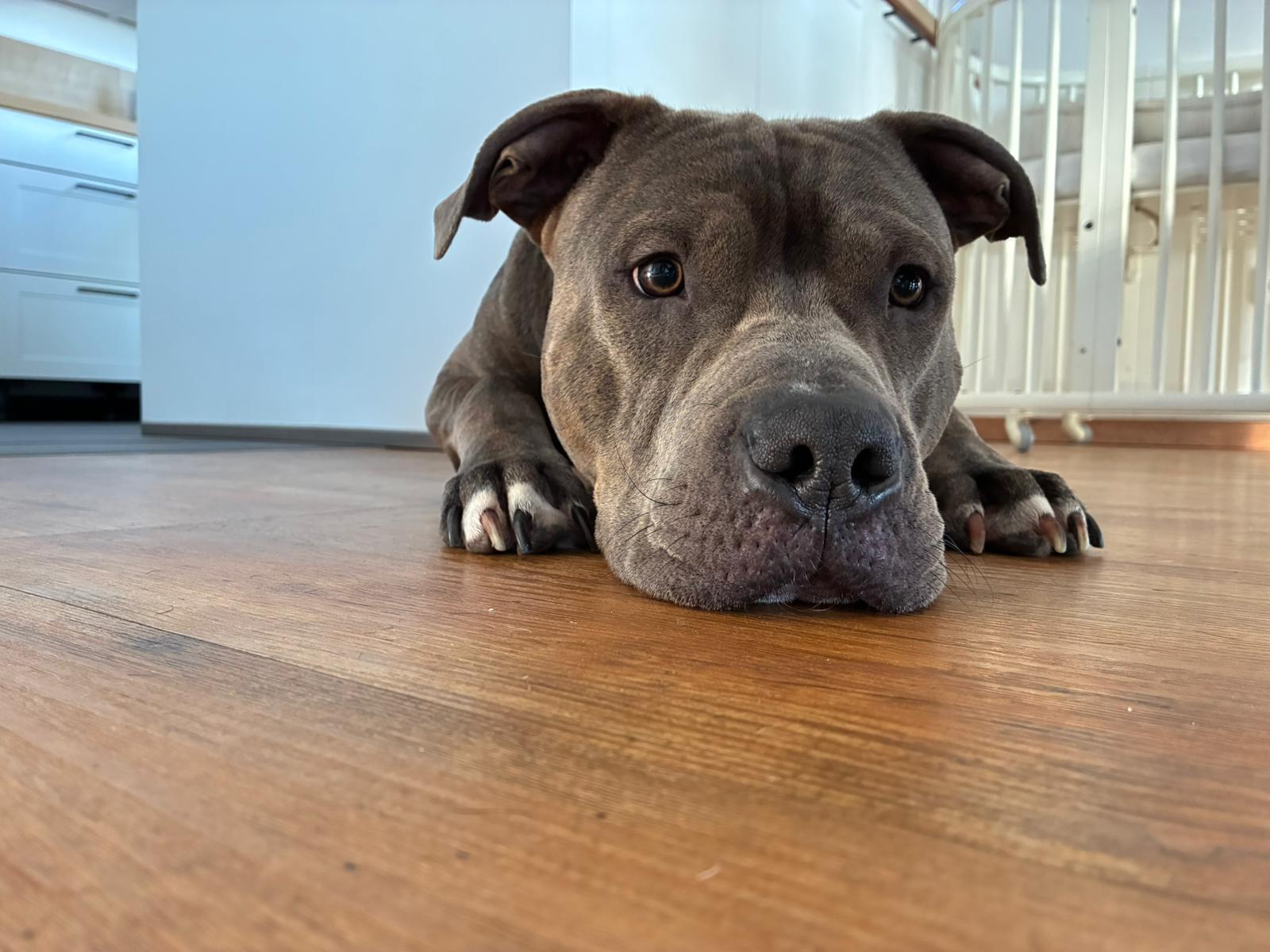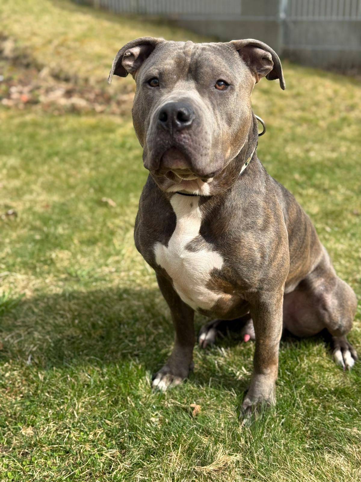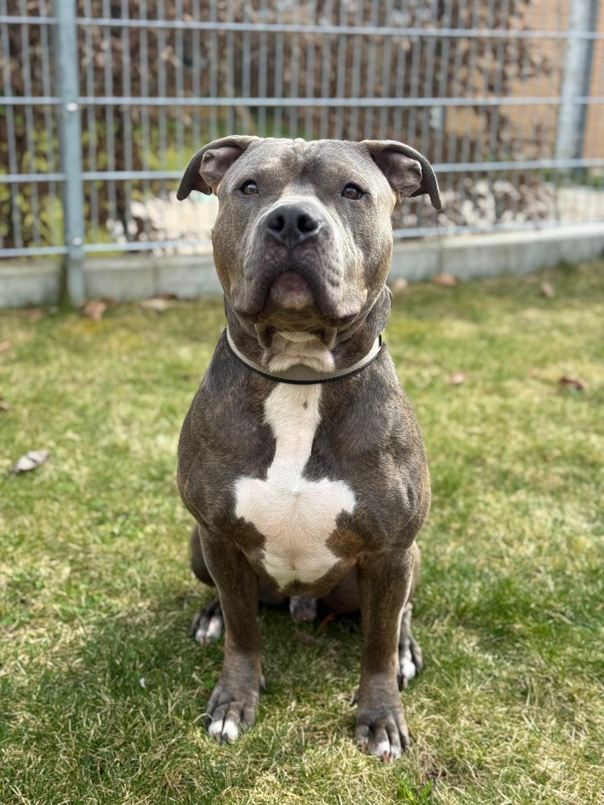 Lutz ist ein zweijähriger, unkastrierter American Staffordshire Mix – ein junger Rüde mit viel Energie, Lebensfreude und einem großen Herz für Menschen.