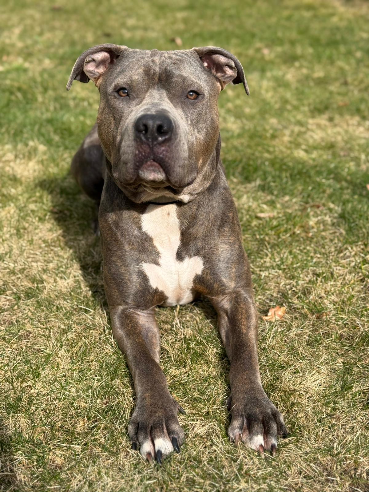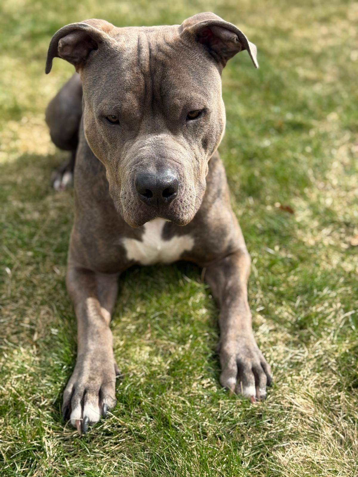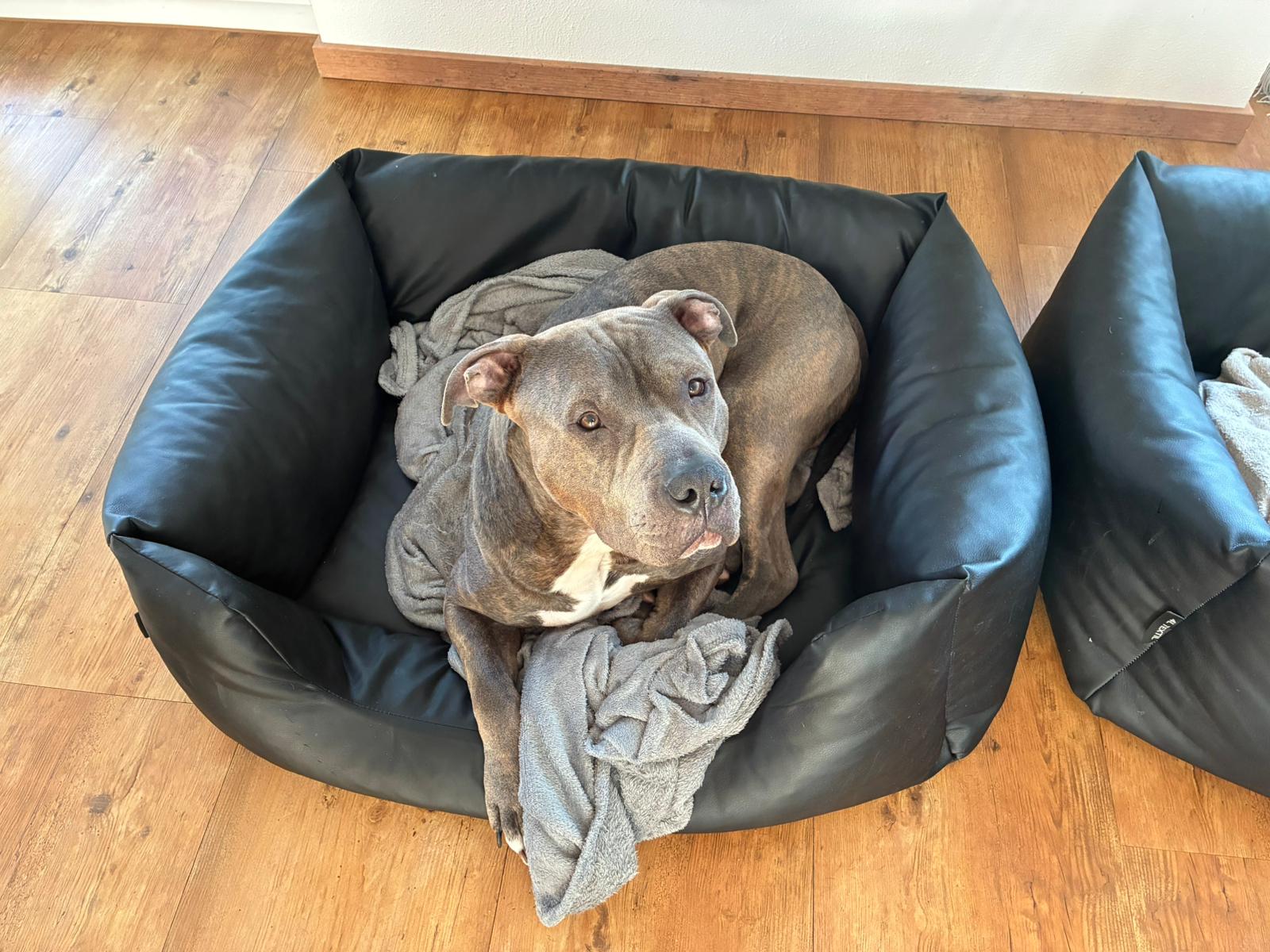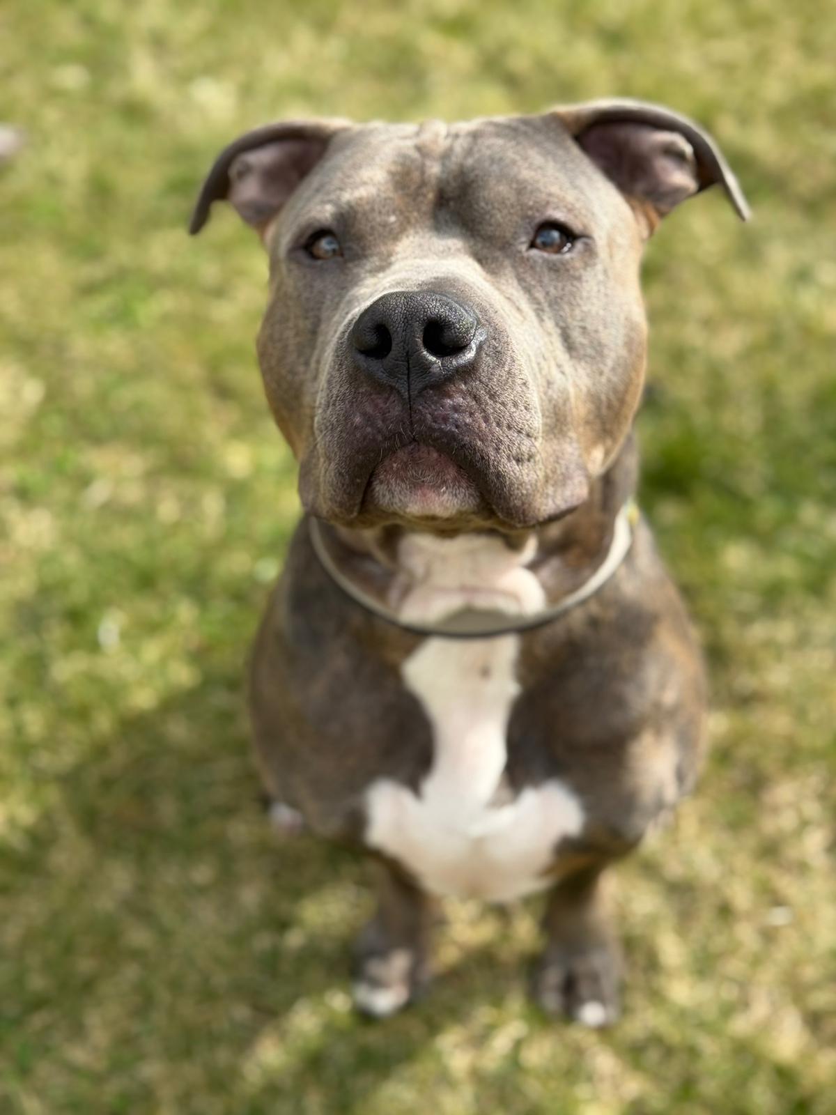 Lutz ist ein zweijähriger, unkastrierter American Staffordshire Mix – ein junger Rüde mit viel Energie, Lebensfreude und einem großen Herz für Menschen.