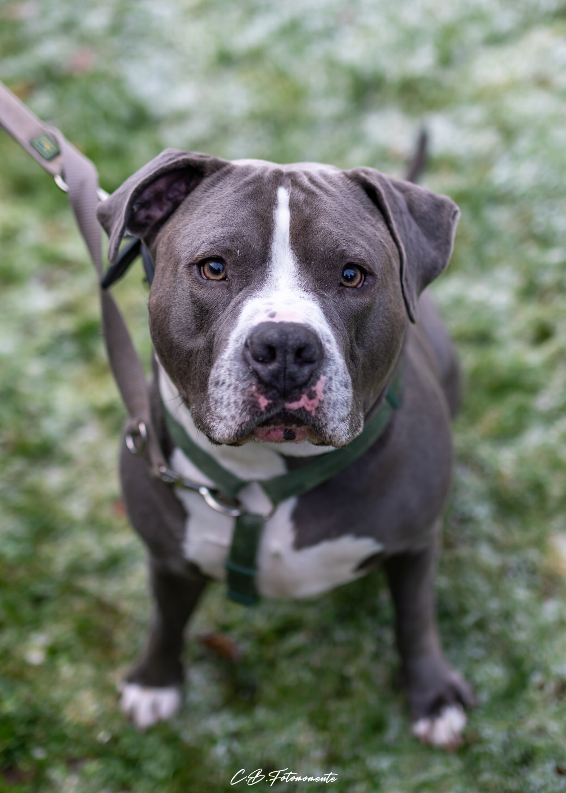 Pablo ist ein stattlicher American-Staffordshire X American Bully Mix-Rüde (ca. 40–43 kg), der nicht nur durch seine Präsenz, sondern vor allem durch sein freundliches und liebevolles Wesen besticht. Er ist kastriert, gechipt, geimpft. Er hat lediglich ein kleines Lipom am Hinterlauf , das noch entfernt werden soll.